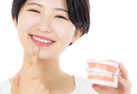 インプラント体を顎の骨に埋め込んで、その上からジルコニアなどセラミック製の人工歯を被せるため、他の治療法と比較しても非常にきれいな見た目に仕上がります。