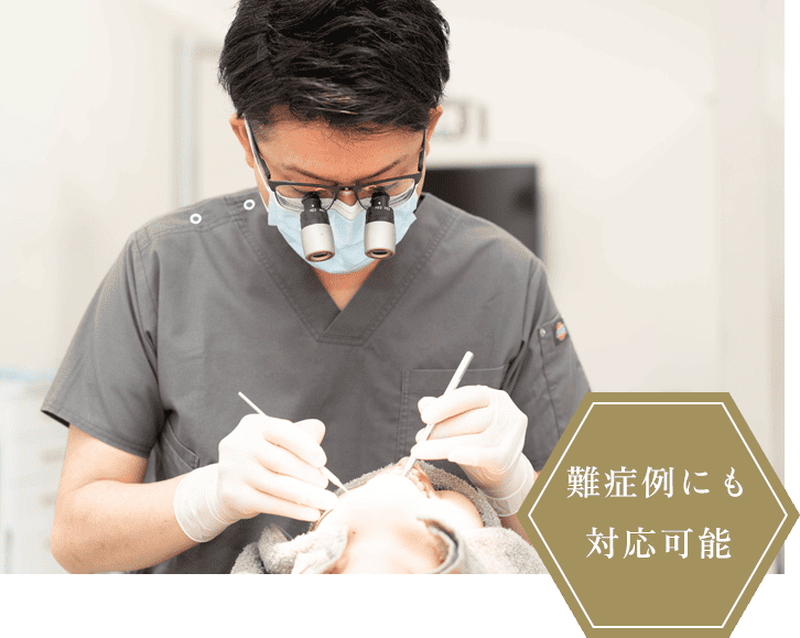 当院では、年間500本以上のインプラント治療を手掛けておりますので、あらゆる症例に対応することが可能です。インプラント専用のさまざまな機器をそろえ、インプラント埋入本数が1本から複数、上顎・下顎すべて(12本~)、骨造成術が必要な症例など、多様な患者様のインプラント治療に対応できる体制を整えております。他院で断られたとしても当院でなら治療できる可能性がありますのでお気軽にご相談ください。