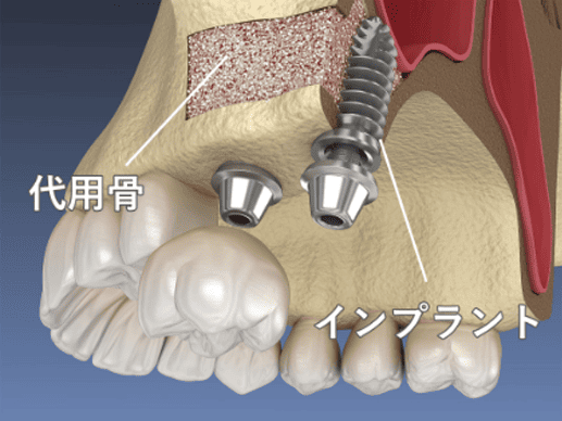 虫歯や外傷などで歯が抜けてしまったり、歯周病などによって痩せてしまった歯槽骨を再生させ、インプラントを埋入するために必要な骨幅や高さが足りない場合に採用される治療法です。